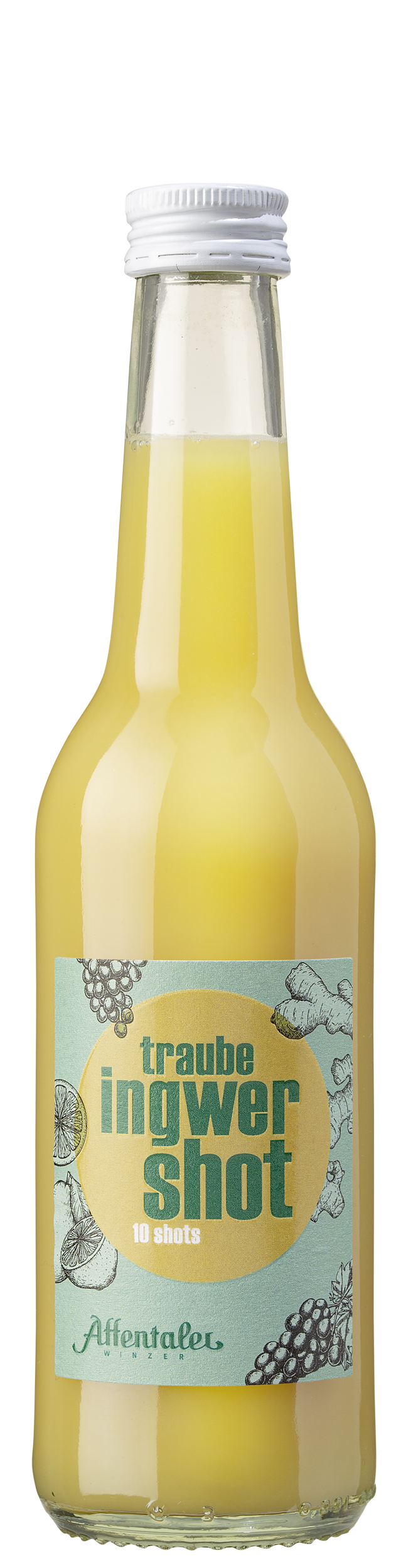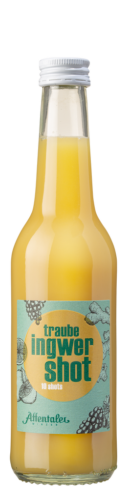 Affentaler Trauben-Ingwer-Shot verbindet Affentaler Rieslingtrauben als fruchtigen Saft mit frischem Ingwersaft und einen spritzigen Zitronenkick.
